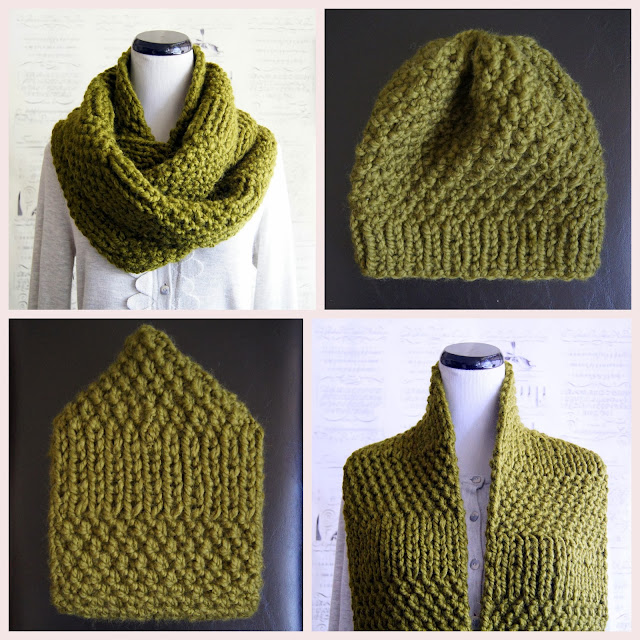 Here's what I came up with: a hat-and-scarf combo that is sure to keep the winter chills away. The four colors above are now available at my shop. More colors are coming soon!
